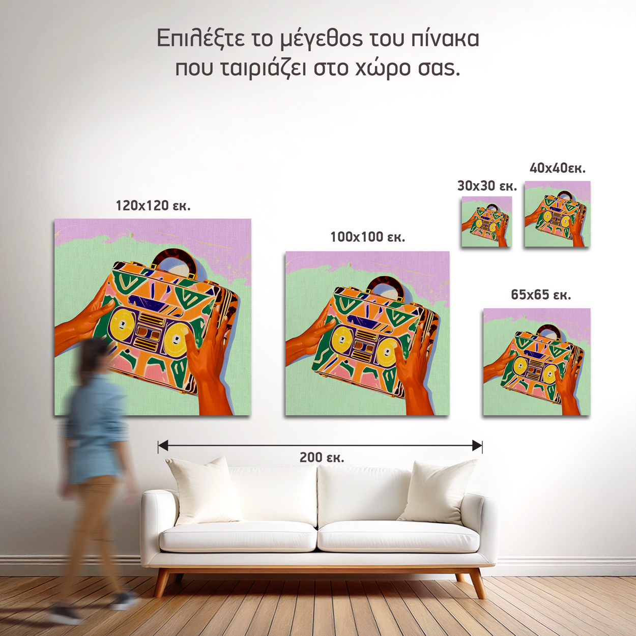 Πίνακας Ζωγραφικής Retro Beat - Decotek 222376 Πίνακας ζωγραφικής με ένα με ένα εκρηκτικό έργο που παντρεύει τη νοσταλγία των 80s με τη σύγχρονη Pop Art, ιδανικό για όσους θέλουν να δώσουν «ένταση» και ρυθμό στους τοίχους τους. Η απόλυτη επιλογή για Urban, Retro-Modern ή Teen διακόσμηση. Ένας πίνακας που αποπνέει αυτοπεποίθηση και δημιουργικότητα, τέλειος για σαλόνια, music rooms ή σύγχρονους επαγγελματικούς χώρους. Οι πίνακες ζωγραφικής εκτυπώνονται με eco μελάνια σε καμβά με σατινέ φινίρισμα και εγγυώνται τέλεια χρώματα για πολλά χρόνια! Τα ξύλα που χρησιμοποιούμε για το τελάρωμα και την κορνίζα είναι από ξύλο πεύκου. Ο όρος "σκοτία" στις κορνίζες προέρχεται από την αρχαία ελληνική λέξη "σκοτία" που σημαίνει σκοτάδι. Αυτή η λέξη χρησιμοποιείται για να περιγράψει το σκοτεινό μέρος της κορνίζας, όπου το ξύλο σκιάζει το περιθώριο του καμβά. Σκοπός της σκοτίας είναι να δημιουργήσει μια οπτική αίσθηση εστίασης στο έργο τέχνης, καθιστώτας το πιο επικεντρωμένο στο μάτι του θεατή. Για οποιαδήποτε διάσταση πέραν των τυποποιημένων διαστάσεων ή για κάποιο σχέδιο της επιλογής σας επικοινωνήστε μαζί μας στο 2310 579 990. Ο χρόνος παράδοσης είναι 4-6 εργάσιμες μέρες.