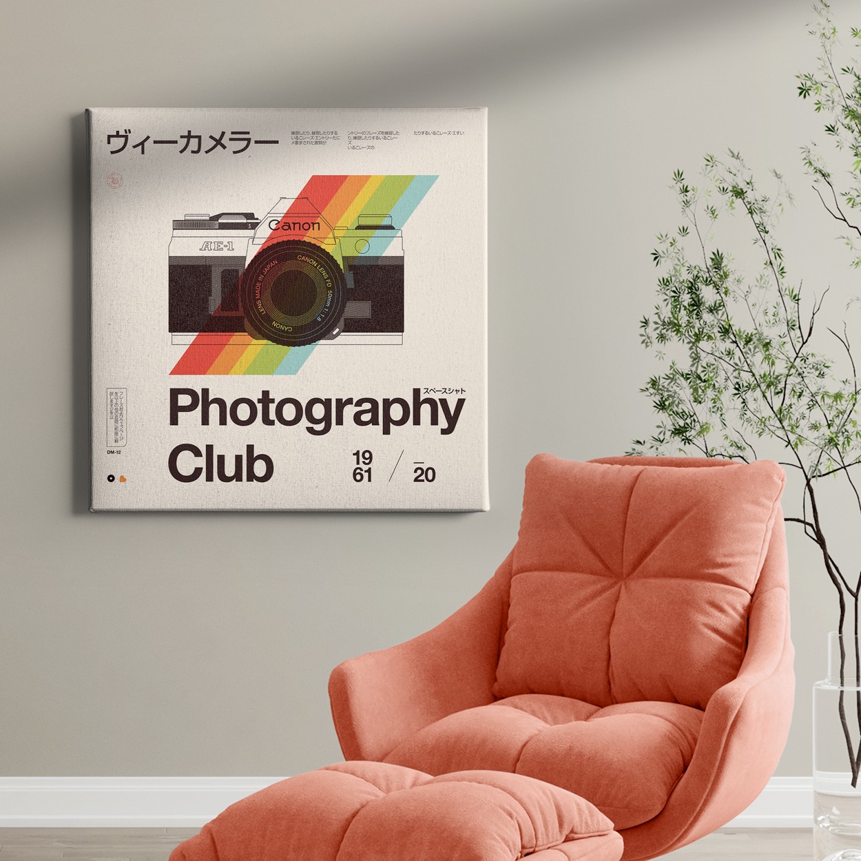 Ο συγκεκριμένος πίνακας ζωγραφικής αποτελεί μια μοναδική επιλογή για τους λάτρεις της αναλογικής φωτογραφίας και του ρετρό σχεδιασμού, που συνδυάζει την τέχνη με τη νοσταλγία. Η εμβληματική κάμερα Canon AE-1, αποτυπωμένη σε στυλ vintage ιαπωνικής αφίσας με χαρακτηριστικές πολύχρωμες ρίγες. Ιδανικό statement κομμάτι για studio φωτογραφίας, δημιουργικά γραφεία ή σαλόνια με mid-century modern και urban αισθητική.
