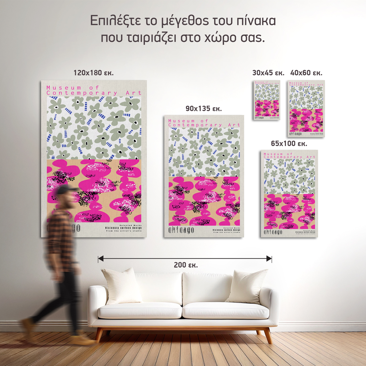 Πίνακας Ζωγραφικής Vintage Exhibition Art, Chicago - Decotek 222346 Πίνακας Ζωγραφικής με ένα τολμηρό και σύγχρονο έργο τέχνης που φέρνει την ενέργεια της μητρόπολης και την αισθητική μιας κορυφαίας γκαλερί απευθείας στον χώρο σας. Ένας ανατρεπτικός συνδυασμός από έντονο neon pink, σοφιστικέ γκρι-πράσινο και ηλεκτρίκ μπλε λεπτομέρειες, που αναδεικνύονται πάνω σε ένα θερμό ροδακινί φόντο. Ιδανική επιλογή για μοντέρνα σαλόνια, creative studios ή χώρους με Urban/Eclectic διακόσμηση. Ένας πίνακας που λειτουργεί ως ένα δυναμικό χρωματικό statement, προσθέτοντας χαρακτήρα και σύγχρονη καλλιτεχνική ταυτότητα σε κάθε τοίχο. Ο όρος "σκοτία" στις κορνίζες προέρχεται από την αρχαία ελληνική λέξη "σκοτία" που σημαίνει σκοτάδι. Αυτή η λέξη χρησιμοποιείται για να περιγράψει το σκοτεινό μέρος της κορνίζας, όπου το ξύλο σκιάζει το περιθώριο του καμβά. Σκοπός της σκοτίας είναι να δημιουργήσει μια οπτική αίσθηση εστίασης στο έργο τέχνης, καθιστώτας το πιο επικεντρωμένο στο μάτι του θεατή. Για οποιαδήποτε διάσταση πέραν των τυποποιημένων διαστάσεων ή για κάποιο σχέδιο της επιλογής σας επικοινωνήστε μαζί μας στο 2310 579 990. Ο χρόνος παράδοσης είναι 4-6 εργάσιμες μέρες.
