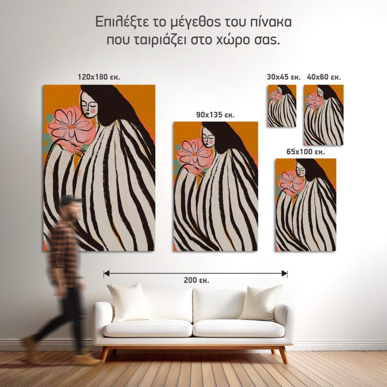 Πίνακας Ζωγραφικής εκτυπωμένος σε 100% βαμβακερό καμβά υψηλής ποιότητα. Επιλέξτε προαιρετικά ο πίνακάς σας να έχει ξύλινη κορνίζα με διαθέσιμα τα χρώματα φυσικό ξύλο, μαύρο και λευκό. Το πάχος του ξύλου της κορνίζας είναι 1 cm x 4 cm.