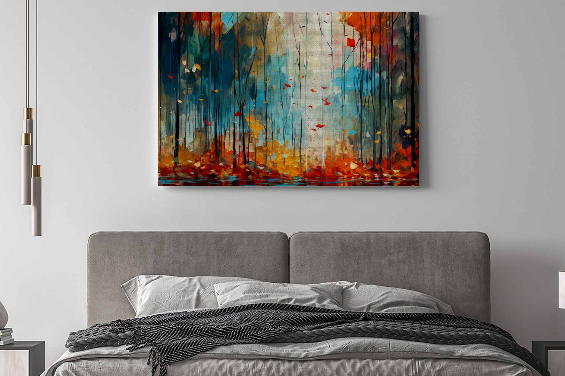 Οι πίνακες ζωγραφικής με διάφορα θέματα, αλλά και γνωστών ζωγράφων, μπορούν να ταιριάξουν εύκολα στο χώρο σας, όπως και ο Πίνακας Ζωγραφικής Abstract Autumn in The Forest – Decotek 221238