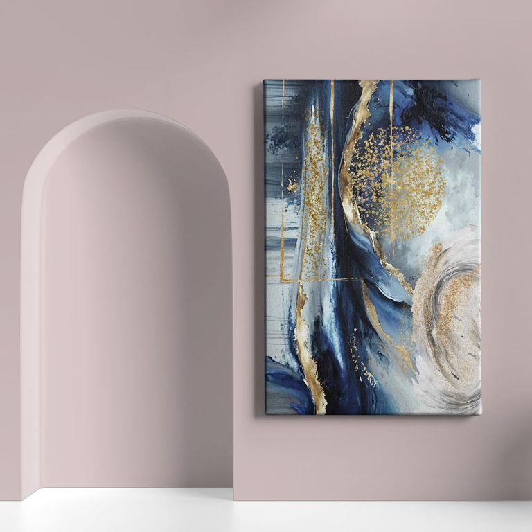 Πίνακας Ζωγραφικής Αφηρημένο Μπλε και Χρυσές Πινελιές – Decotek 221607