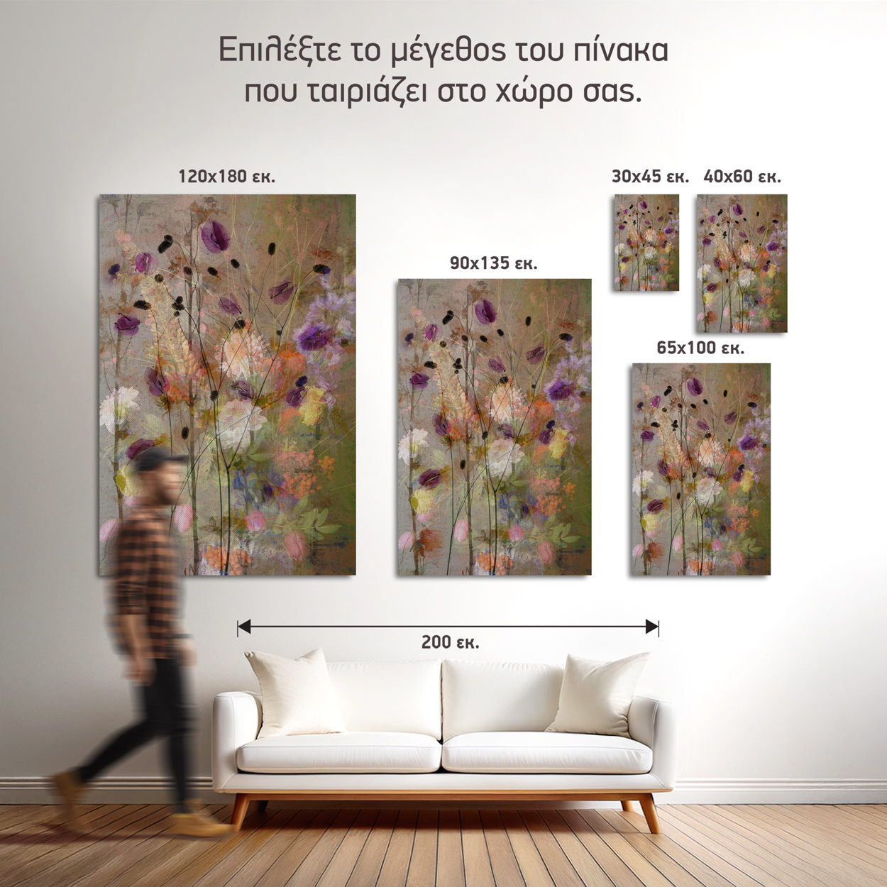 1. Ιδανικό ύψος: 145-165 εκ. από το δάπεδο (κέντρο πίνακα)