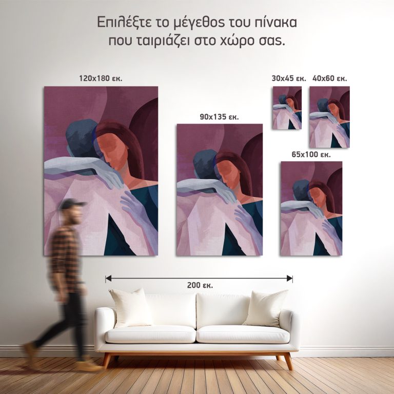 Οι πίνακες ζωγραφικής που απεικονίζουν ένα αγκαλιασμένο ζευγάρι θα ανανεώσουν το χώρο σας και θα περάσουν μηνύματα ότι η αγάπη μπορεί να είναι καταφύγιο, πώς η σύνδεση με τον άλλον μπορεί να φέρνει χαρά και πληρότητα, ή ακόμα και πώς οι προκλήσεις της ζωής μπορούν να γίνονται πιο εύκολες όταν υπάρχουν δύο μαζί.