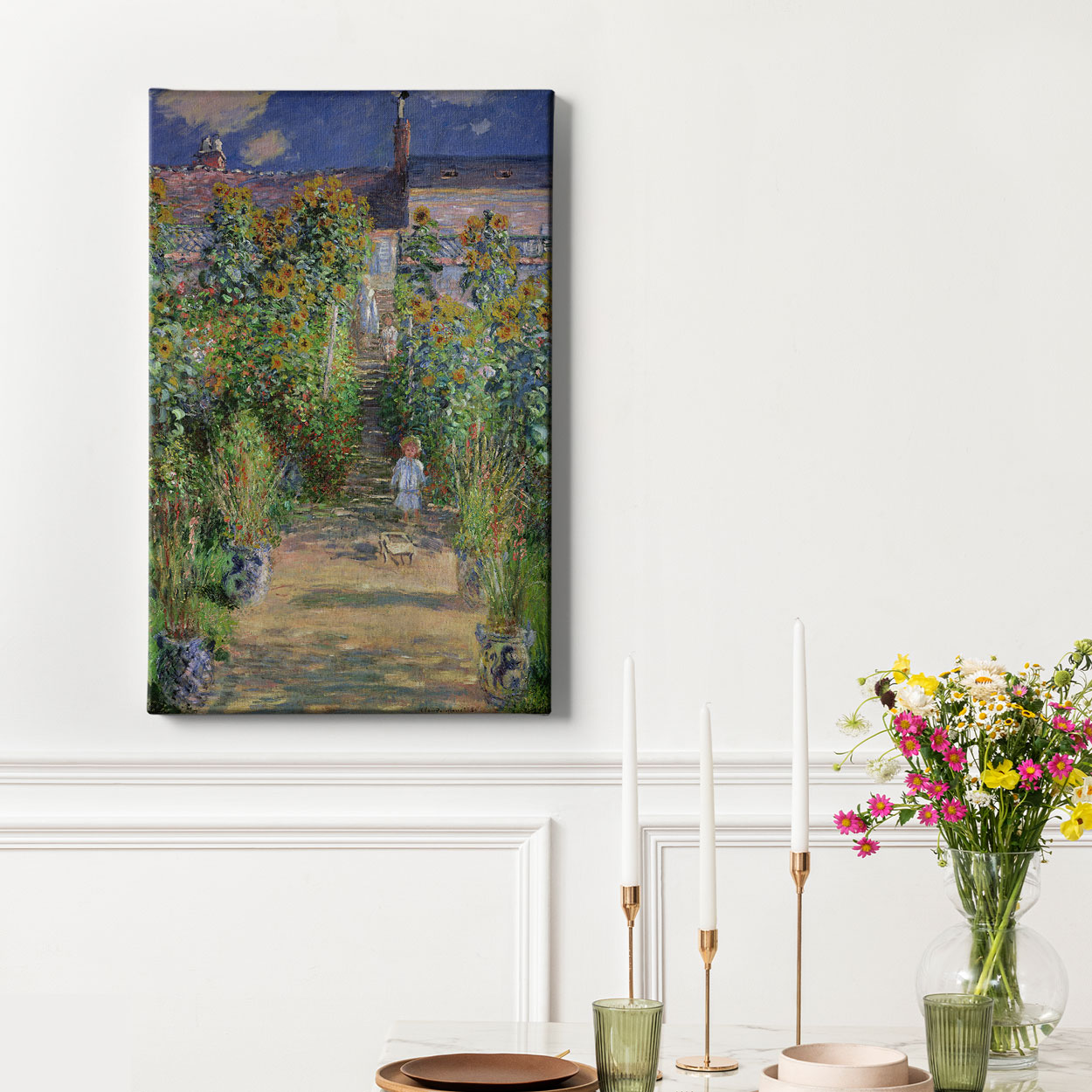 Ένας σημαντικός πίνακας του Γάλλου ζωγράφου από μια σειρά έργων βασισμένα στο σπίτι και τον κήπο του. Το αγόρι είναι ο μικρός γιος του Μονέ και στα σκαλιά πίσω του βρίσκονται άλλα μέλη της οικογένειάς του.