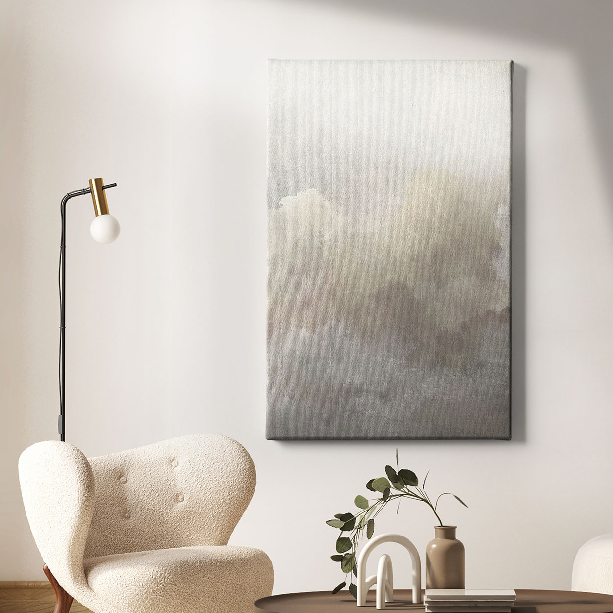 Ατμοσφαιρικός πίνακας ζωγραφικής με απαλά σύννεφα, αποδοσμένα σε ήρεμους τόνους εμπνευσμένους από το Cloud Dancer, το χρώμα της χρονιάς για το 2026. Η σύνθεση δημιουργεί αίσθηση ελευθερίας, φωτεινότητας και χαλάρωσης, προσφέροντας μια διακριτική αλλά εντυπωσιακή παρουσία στον χώρο. Ιδανικός για σαλόνια, υπνοδωμάτια και επαγγελματικούς χώρους, ο πίνακας ενσωματώνεται εύκολα σε σύγχρονες και minimal διακοσμήσεις.