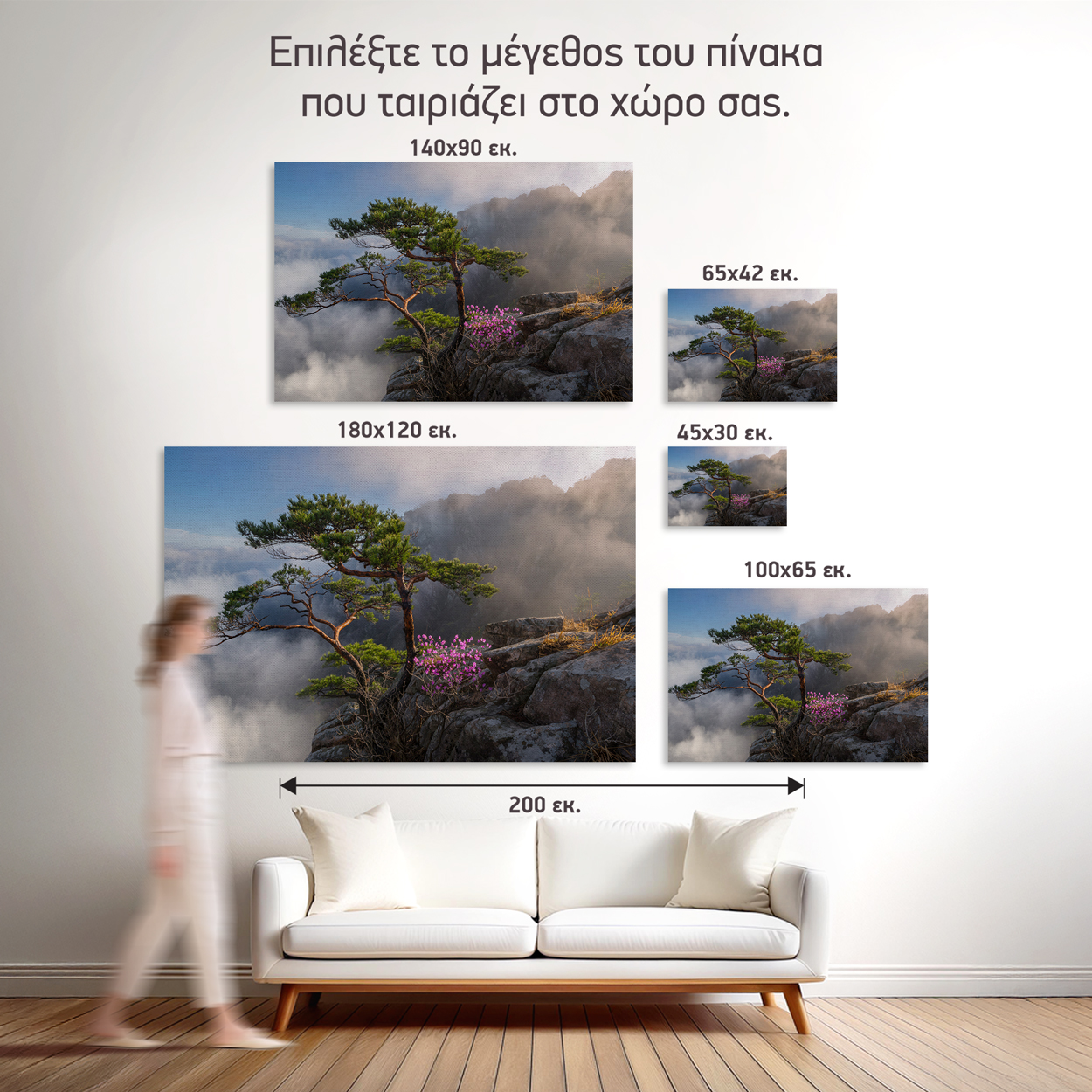 - Ιδανικό ύψος: 145-165 εκ. από το δάπεδο (κέντρο πίνακα)