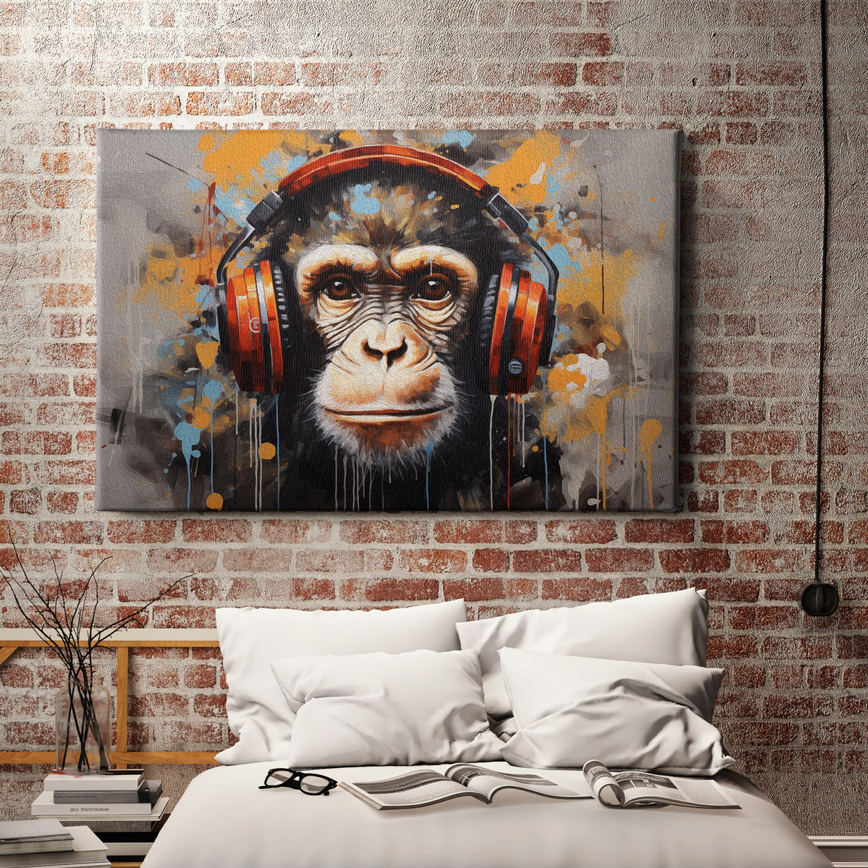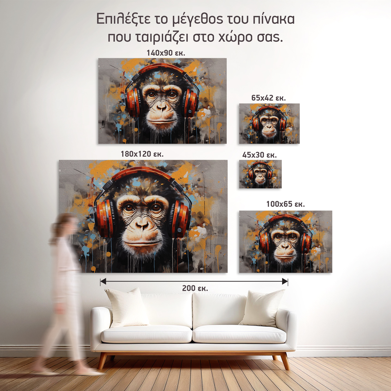 Οι πίνακες ζωγραφικής που απεικονίζουν μια μαϊμού με ακουστικά, θα ανανεώσουν τον χώρο σας με το παιχνιδιάρικο σχέδιο και τα υπέροχα χρώματα που διαθέτουν.