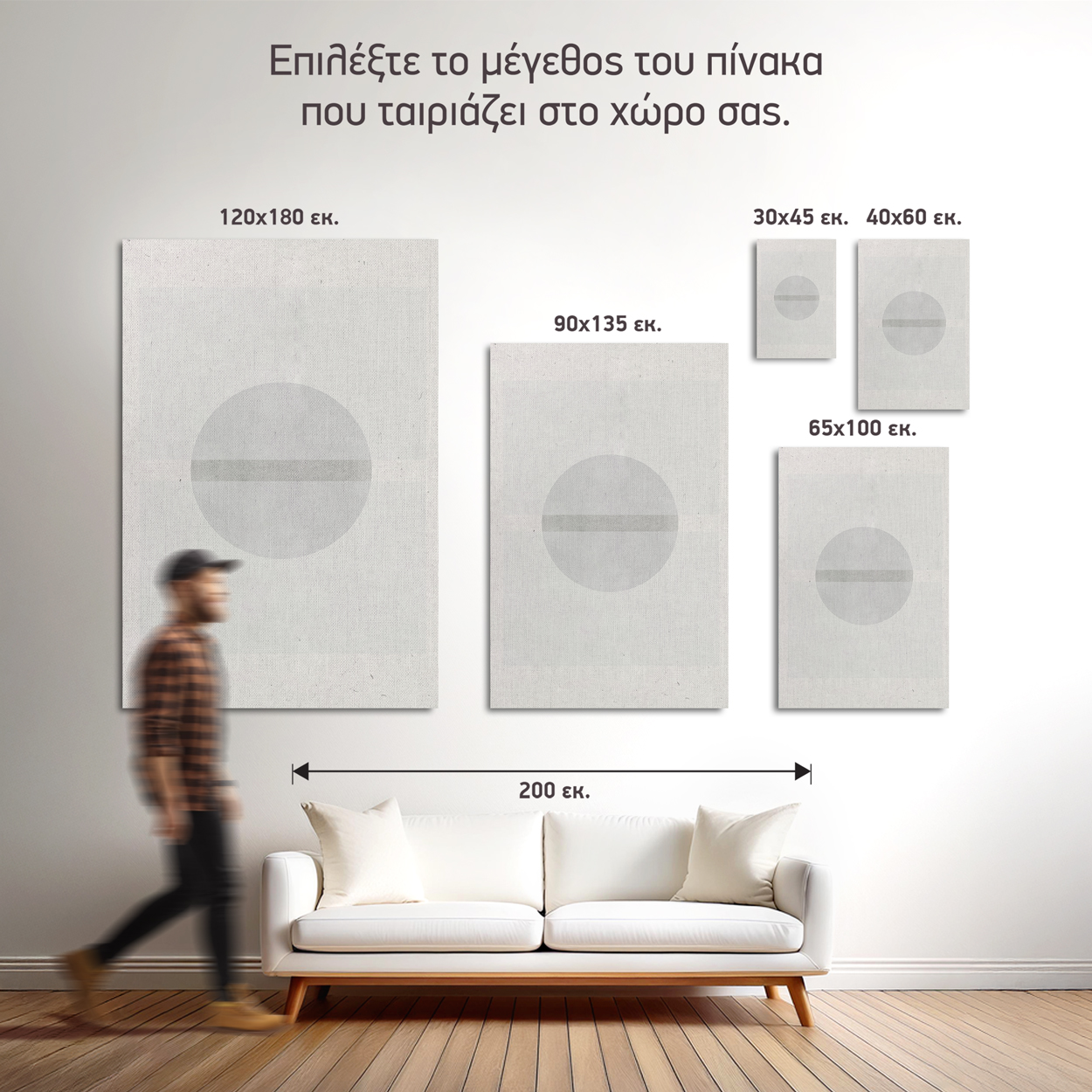 - Ιδανικό ύψος: 145-165 εκ. από το δάπεδο (κέντρο πίνακα)
