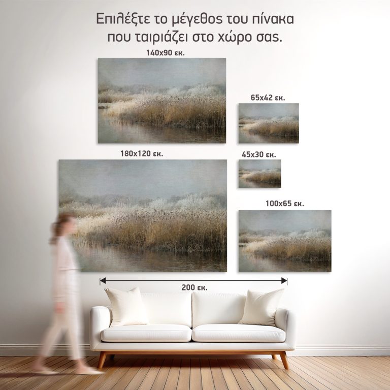 Πίνακας Ζωγραφικής εκτυπωμένος σε 100% βαμβακερό καμβά υψηλής ποιότητα. Επιλέξτε προαιρετικά ο πίνακάς σας να έχει ξύλινη κορνίζα με διαθέσιμα τα χρώματα φυσικό ξύλο, μαύρο και λευκό. Το πάχος του ξύλου της κορνίζας είναι 1 cm x 4 cm.