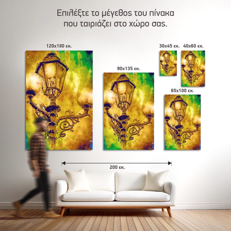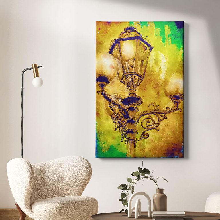 Αυτός ο κομψός καμβάς παρουσιάζει μια βίνταζ λάμπα δρόμου σε κοντινό πλάνο, αποτυπώνοντας την αρχοντιά και τη γοητεία του παρελθόντος. Μεταλλικές λεπτομέρειες, φθορά από τον χρόνο και το απαλό φως του δειλινού ή της νύχτας, δημιουργούν ένα έντονα νοσταλγικό και ρομαντικό αποτέλεσμα. Ιδανική πρόταση για χώρους που θέλουν να εκπέμπουν ιστορία, στυλ και αισθητική ηρεμία.