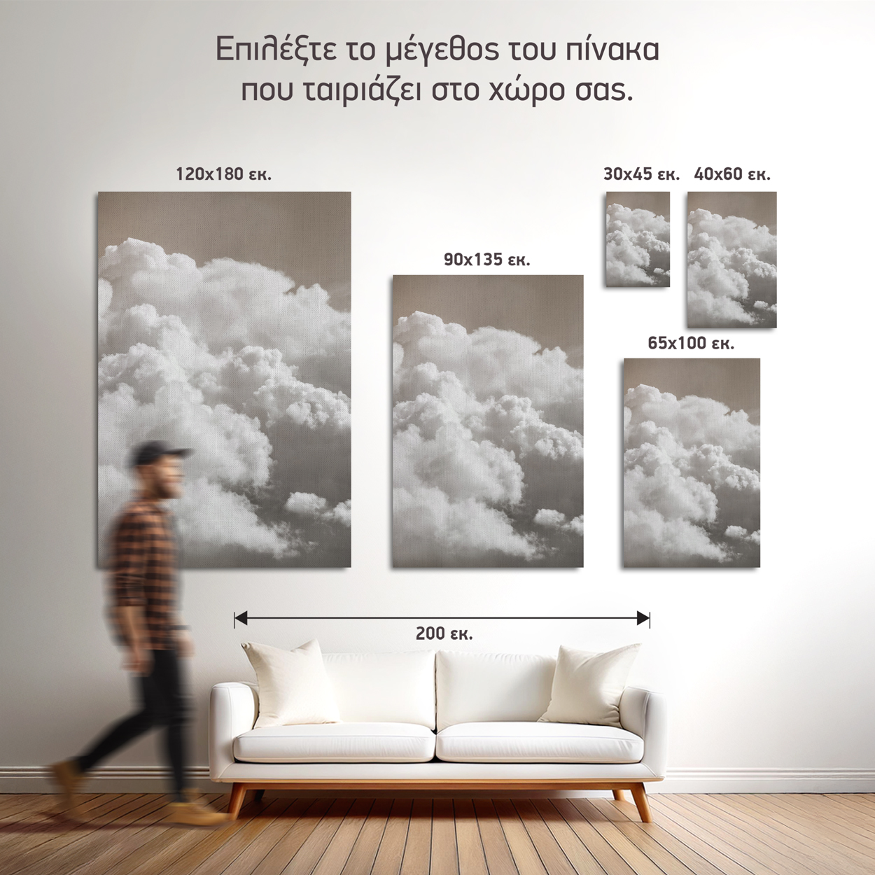 Ένας ήρεμος και ατμοσφαιρικός πίνακας που απεικονίζει έναν γκρι ουρανό με απαλές λευκές νεφώσεις, δημιουργώντας αίσθηση βάθους και ηρεμίας. Οι διακριτικές αποχρώσεις του Cloud Dancer, του χρώματος της χρονιάς 2026, προσδίδουν φωτεινότητα και ισορροπία, κάνοντας το έργο ιδανικό για σύγχρονους και minimal χώρους. Ο πίνακας λειτουργεί ως ουδέτερο αλλά εκφραστικό στοιχείο διακόσμησης, ταιριάζοντας άψογα σε σαλόνια, υπνοδωμάτια, γραφεία ή επαγγελματικούς χώρους. Προσθέτει μια αίσθηση ηρεμίας, καθαρότητας και διαχρονικής κομψότητας, ενώ ενσωματώνει αρμονικά τις σύγχρονες χρωματικές τάσεις.