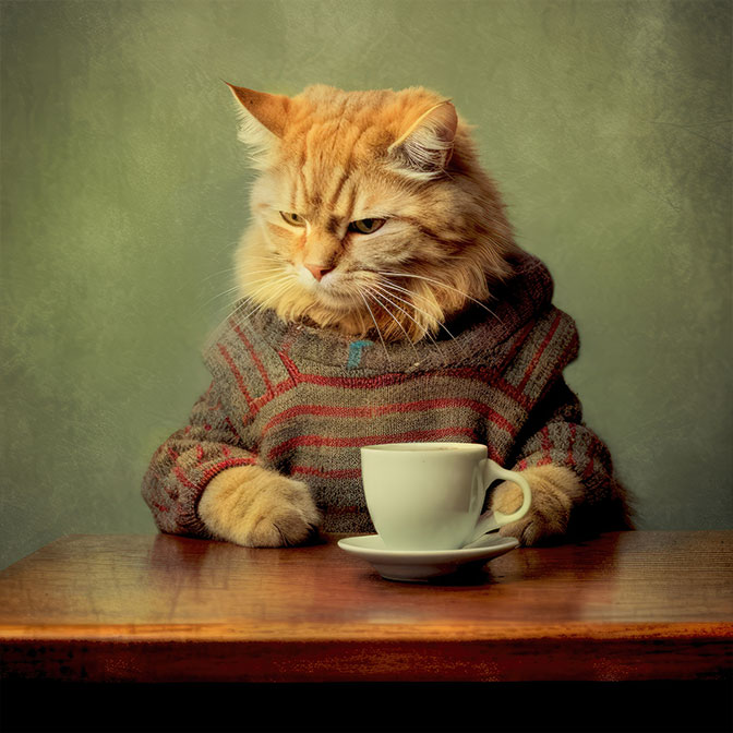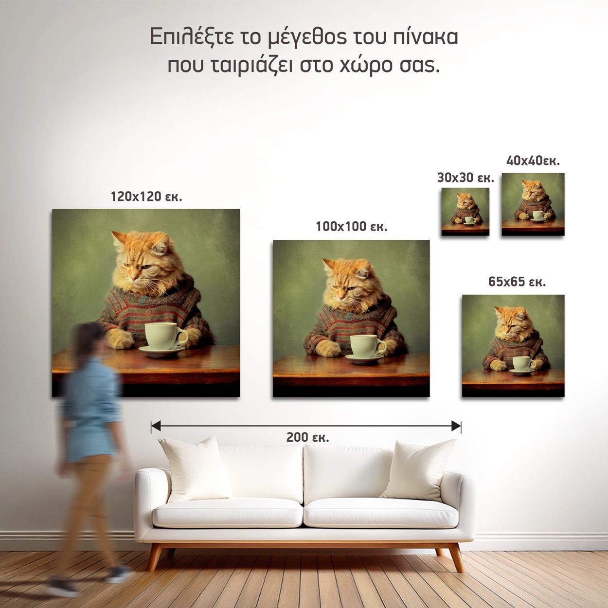 Οι πίνακες ζωγραφικής που απεικονίζουν έναν γάτο να πίνει τον πρωινό του καφέ, θα ανανεώσουν το χώρο σας με το σουρεαλιστικό αλλά και παιχνιδιάρικο σχέδιο τους.