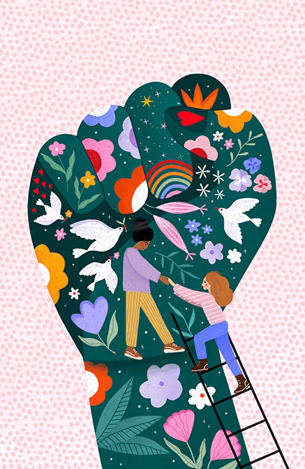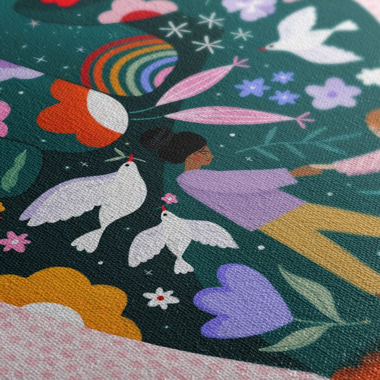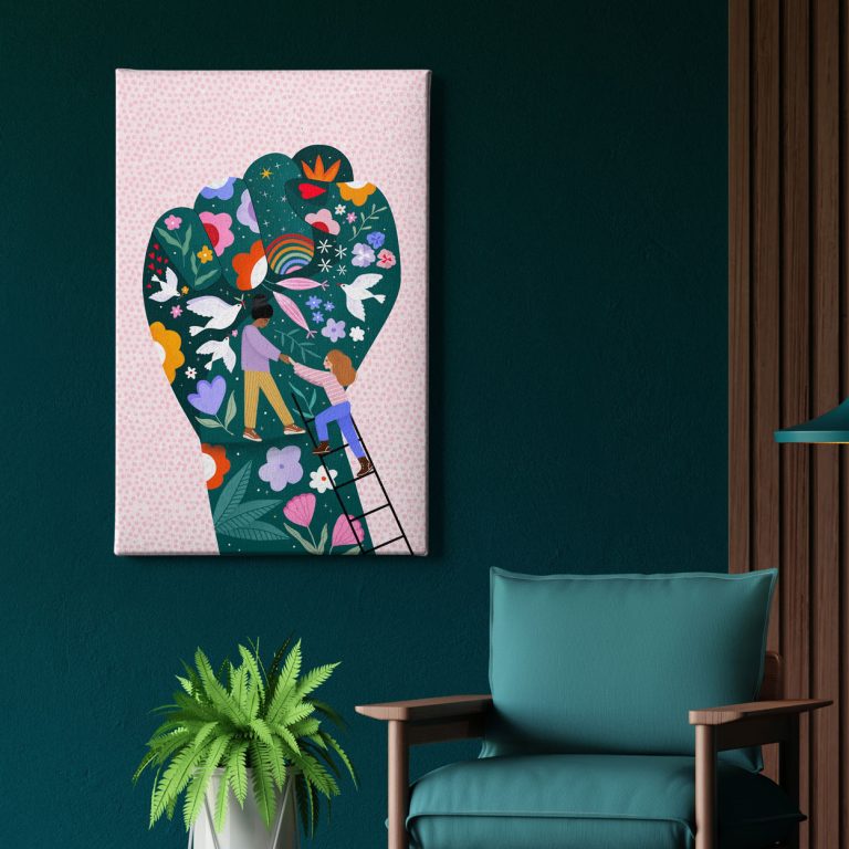 Oι πίνακες ζωγραφικής που απεικονίζουν γυναίκες πιασμένες χέρι,χέρι είναι μια υπενθύμιση της δύναμης της γυναικείας αλληλεγγύης και της σημασίας της υποστήριξης μεταξύ των γυναικών. Τα χρώματά τους είναι ζωντανά και θερμά, συμβολίζοντας την αγάπη και την ενότητα.