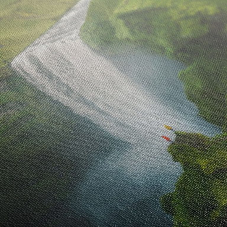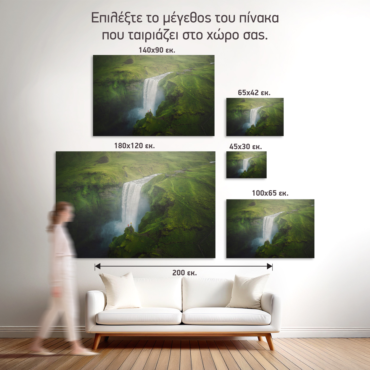 Αφεθείτε στη γοητεία της άγριας φύσης με αυτόν τον εντυπωσιακό πίνακα που απεικονίζει έναν καταρράκτη στην Ισλανδία, μέσα σε ένα καταπράσινο, παρθένο τοπίο. Η ένταση του νερού που πέφτει και η ηρεμία του περιβάλλοντος δημιουργούν μια μοναδική αντίθεση που φέρνει ισορροπία και ζωντάνια στον χώρο σας. Ένας πίνακας που αποπνέει καθαρότητα, δύναμη και φυσική αρμονία, ιδανικός για μοντέρνους αλλά και φυσιολατρικούς χώρους.