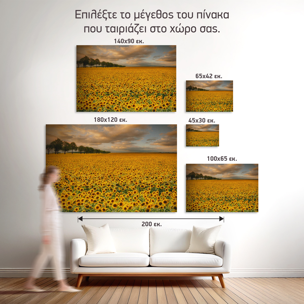 1. Ιδανικό ύψος: 145-165 εκ. από το δάπεδο (κέντρο πίνακα)