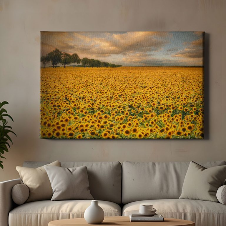 Οι πίνακες ζωγραφικής που απεικονίζουν ένα λιβάδι γεμάτο ηλιοτρόπια, θα γεμίσουν το χώρο σας θετικά συναισθήματα, χαρά και αισιοδοξία, καθώς η θέα αυτών των φυτών είναι ευχάριστη και σας συνδέει με τη φύση.