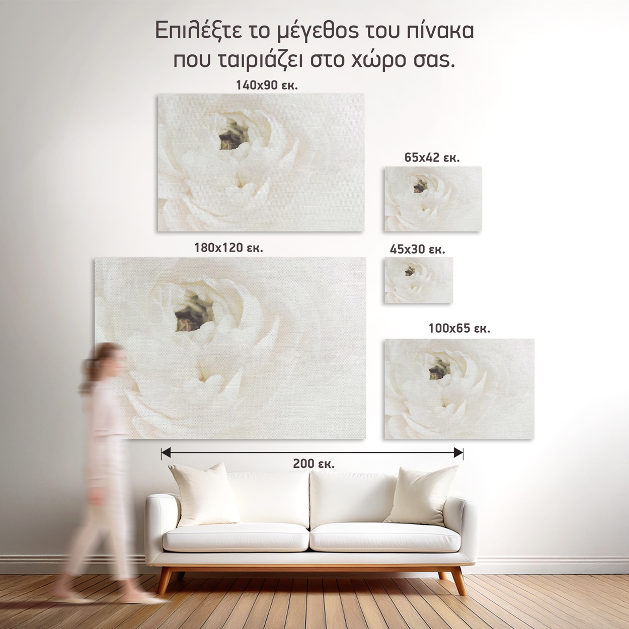 Ένας αέρινος πίνακας που αποτυπώνει τη λεπτότητα και τη διαχρονική κομψότητα ενός λευκού άνθους σε κοντινή λήψη. Οι απαλές αποχρώσεις του Cloud Dancer, το χρώμα της χρονιάς 2026, δημιουργούν μια αίσθηση ηρεμίας, φωτός και καθαρότητας, καθιστώντας το έργο ιδανικό για σύγχρονους και minimal χώρους.