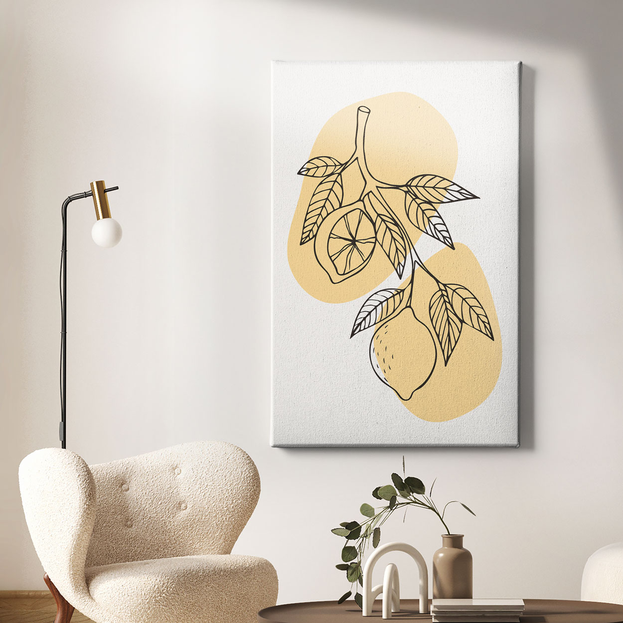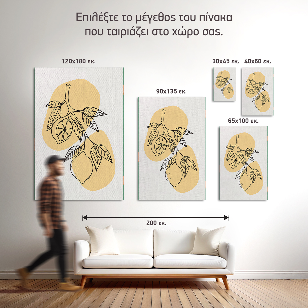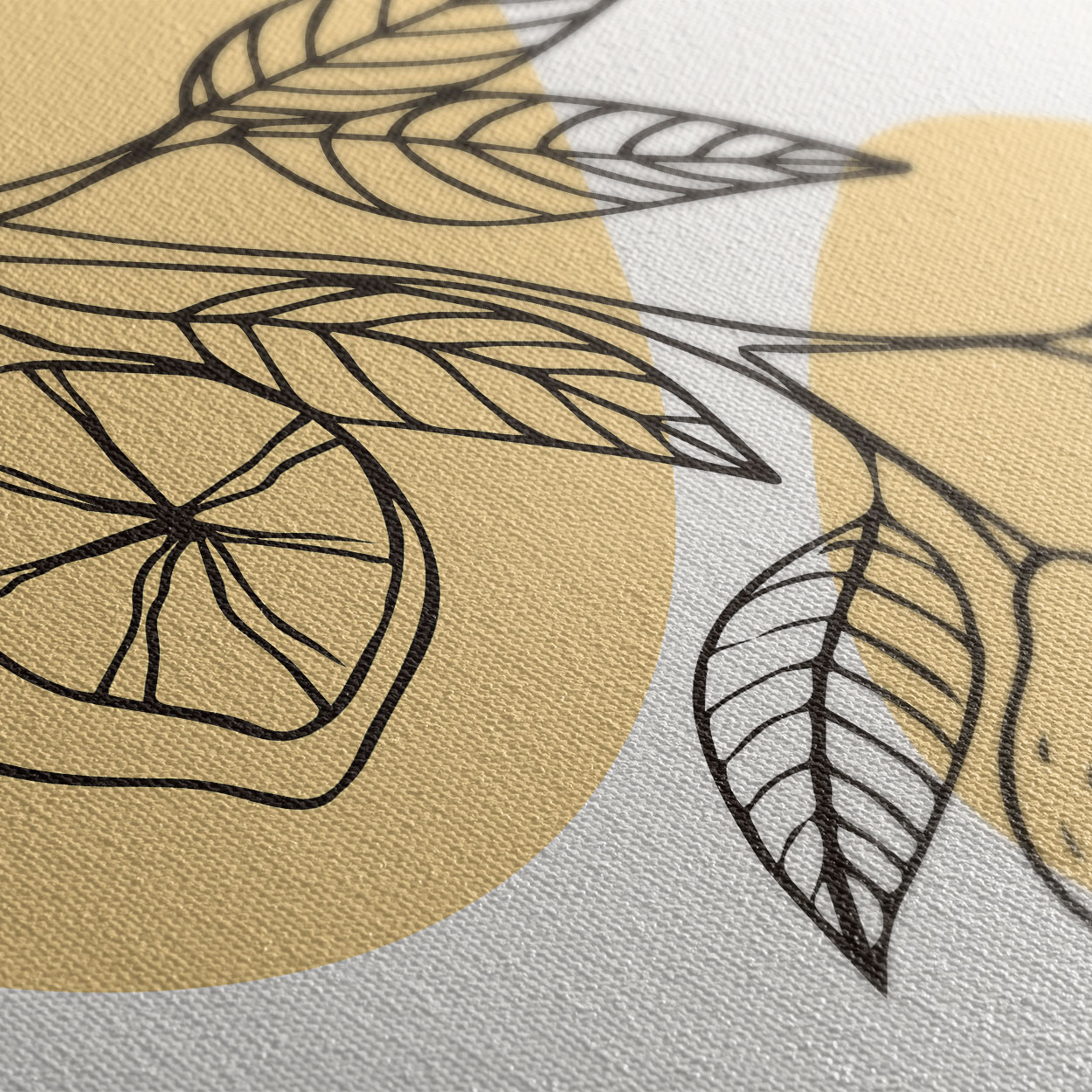 Μια μινιμαλιστική σύνθεση με δύο λεμόνια τοποθετημένα πάνω σε απόλυτα λευκό φόντο. Η απλότητα του σχεδίου και η καθαρότητα των χρωμάτων τονίζουν τη φρεσκάδα, τη φυσικότητα και την ελαφρότητα του θέματος. Ο πίνακας αποπνέει μοντέρνα αισθητική με φυσικές αναφορές, καθιστώντας τον ιδανικό για κουζίνα, τραπεζαρία ή χώρους με scandi, boho ή σύγχρονο rustic στυλ διακόσμησης.