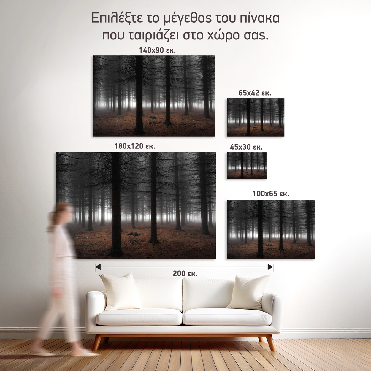 1. Ιδανικό ύψος: 145-165 εκ. από το δάπεδο (κέντρο πίνακα)