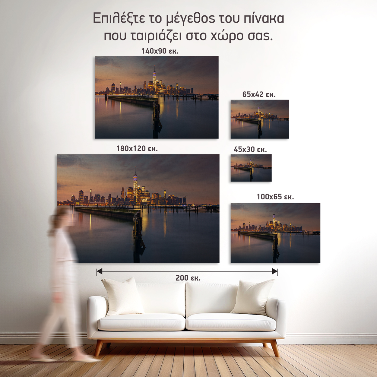 Οι πίνακες ζωγραφικής που απεικονίζουν τη Νέα Υόρκη, η οποία είναι μια πόλη που γεμίζει κάποιον με έντονα συναισθήματα, θα ταιριάξουν τέλεια στο χώρο σας κθώς οι ουρανοξύστες αγκαλιάζουν τον ουρανό, ενώ τα χρώματα του ηλιοβασιλέματος, από πορτοκαλί και ροζ μέχρι βαθύ μπλε, ζωγραφίζουν την ατμόσφαιρα.