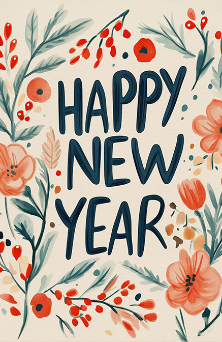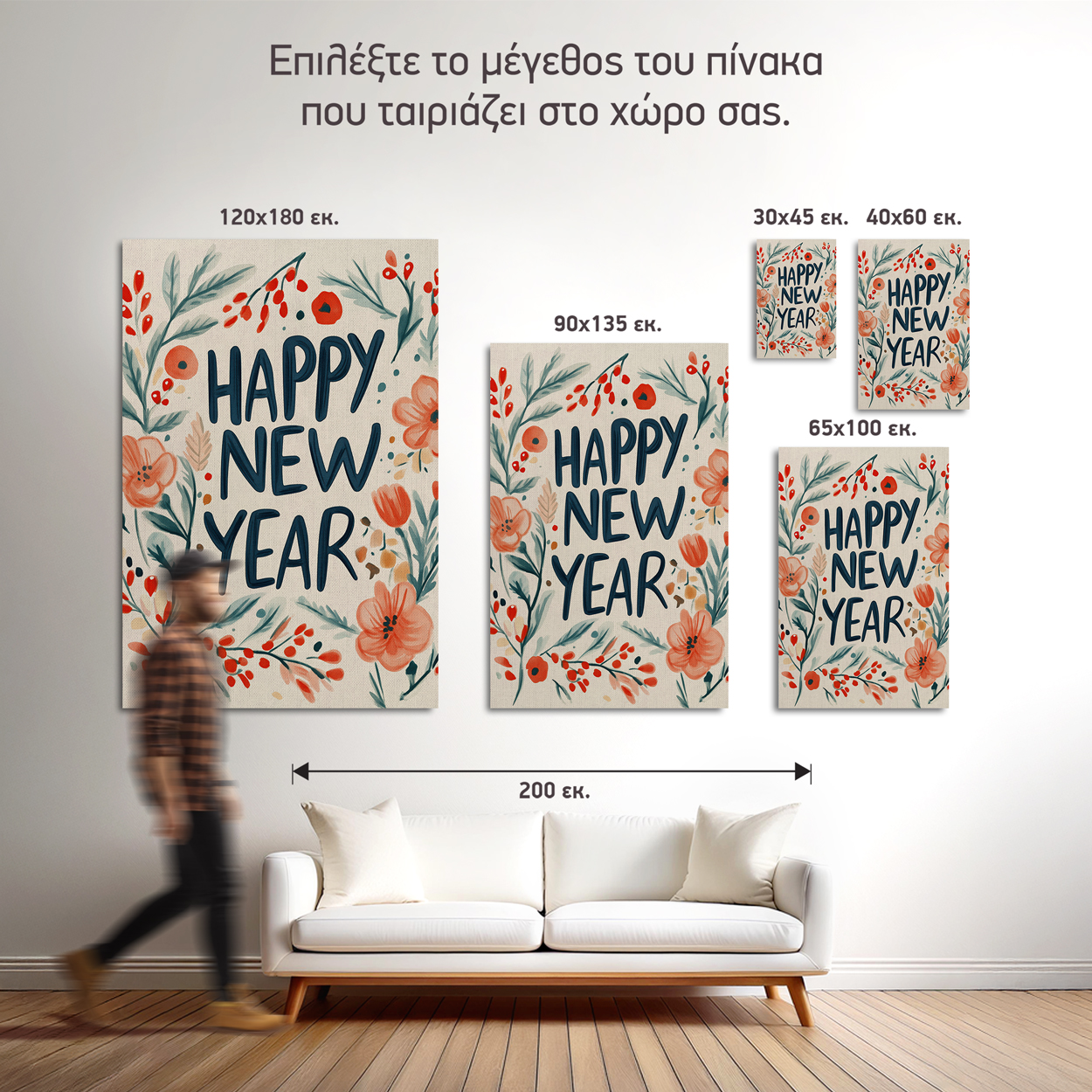 Ρομαντική, διακοσμητική σύνθεση λουλουδιών γύρω από ευχετήριο μήνυμα. Λειτουργεί ως διακριτική γιορτινή πινελιά για επαγγελματικούς χώρους (ξενοδοχεία, γραφεία, βιτρίνες) και για οικίες, σαλόνι ή τραπεζαρία , που θέλουν να υποδεχτούν τη νέα χρονιά με στυλ.