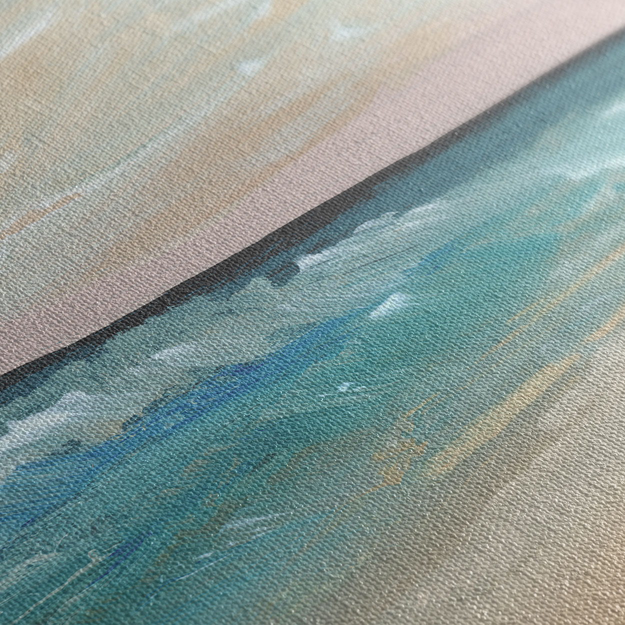 Καλλιτεχνικός πίνακας με αφηρημένη απεικόνιση παραλίας σε απαλές αποχρώσεις γαλάζιου, μπλε και μπεζ. Οι δυναμικές πινελιές προσδίδουν κίνηση και ζωντάνια, ενώ η χρωματική παλέτα παραπέμπει σε θάλασσα και άμμο. Ιδανική επιλογή για coastal, mediterranean ή minimal διακόσμηση. Προσθέστε μια πνοή καλοκαιριού στον χώρο σας όλο τον χρόνο.