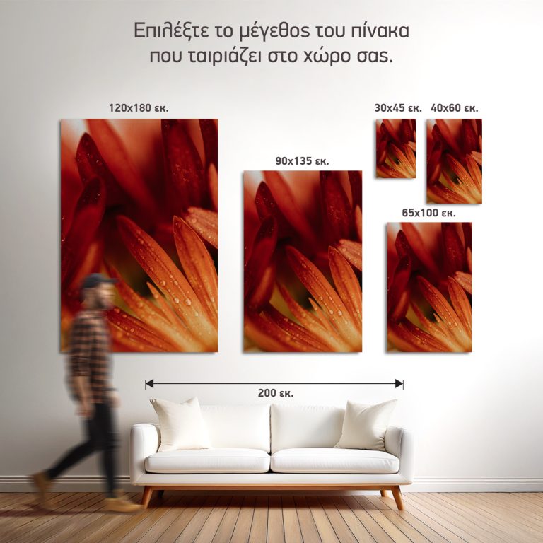Πίνακας Ζωγραφικής εκτυπωμένος σε 100% βαμβακερό καμβά υψηλής ποιότητας. Επιλέξτε προαιρετικά ο πίνακάς σας να έχει ξύλινη κορνίζα με διαθέσιμα τα χρώματα φυσικό ξύλο, μαύρο και λευκό. Το πάχος του ξύλου της κορνίζας είναι 1 cm x 4 cm.