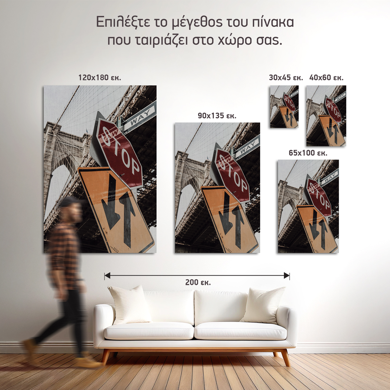 Oι πίνακες ζωγραφικής με την πινακίδα κάτω από μια γέφυρα θα ανανεώσουν τον χώρο σας με το ιδιαίτερο αρχιτεκτονικό σχέδιο.