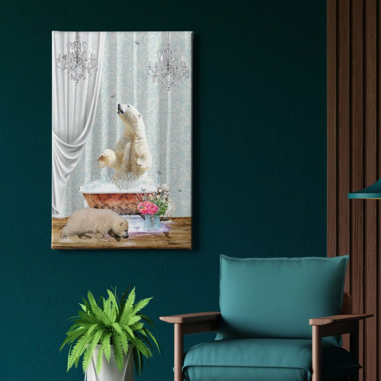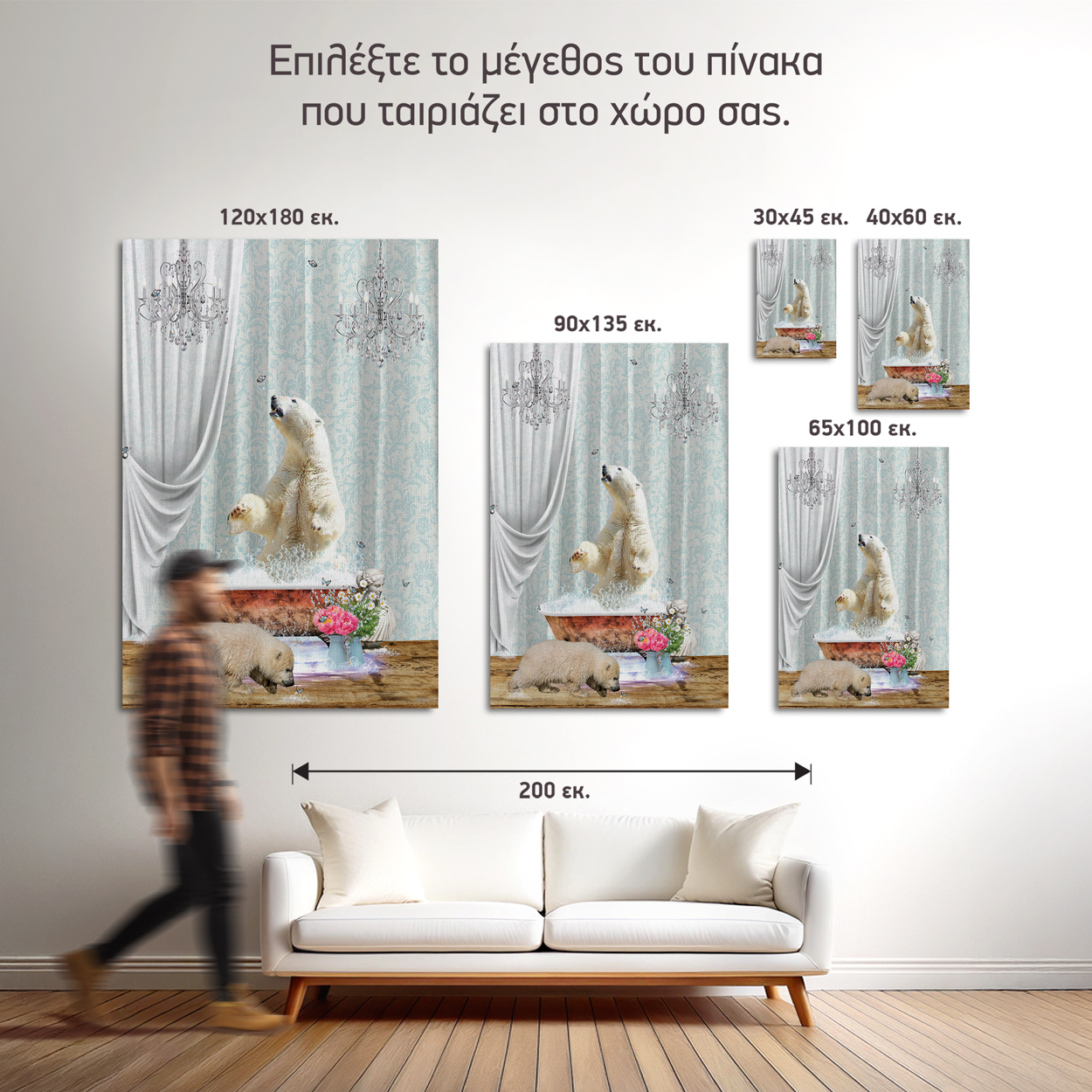 Oι πίνακες ζωγραφικής που απεικονίζουν πολικές αρκούδες σε μια μπανιέρα, θα ανανεώσουν το χώρο σας με το παιχνιδιάρικο σχέδιο και θα δώσουν μια νότα αισιοδοξίας.