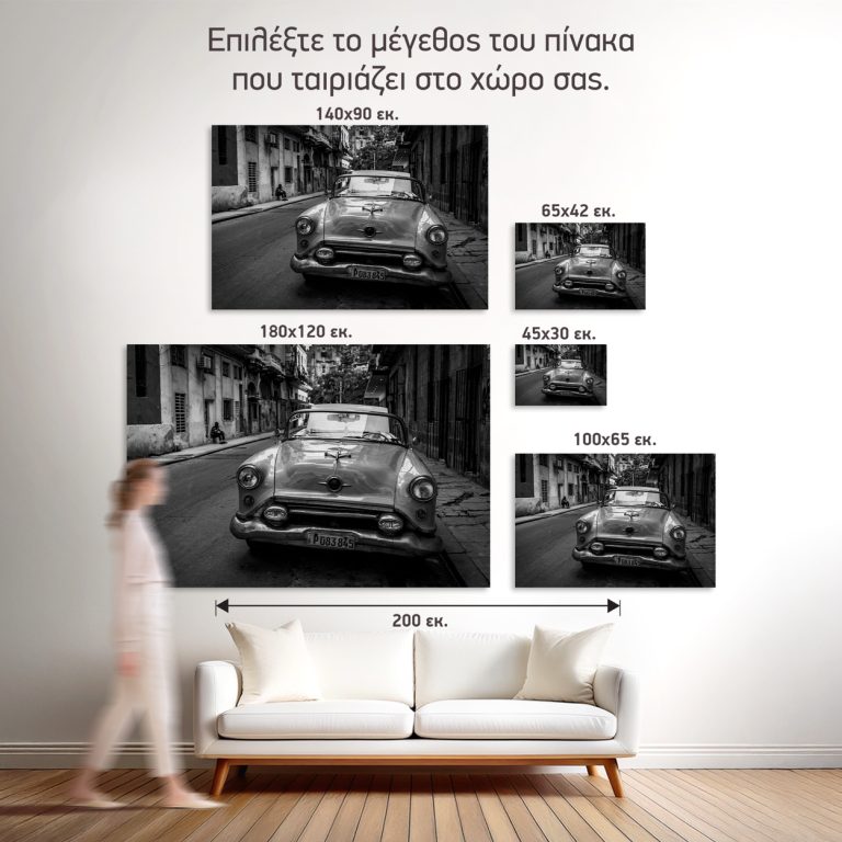 Πίνακας Ζωγραφικής εκτυπωμένος σε 100% βαμβακερό καμβά υψηλής ποιότητας. Επιλέξτε προαιρετικά ο πίνακάς σας να έχει ξύλινη κορνίζα με διαθέσιμα τα χρώματα φυσικό ξύλο, μαύρο και λευκό. Το πάχος του ξύλου της κορνίζας είναι 1 cm x 4 cm.