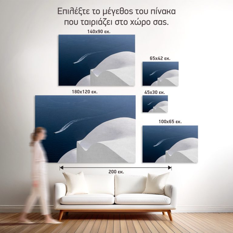 Ζήστε την αίσθηση του ελληνικού καλοκαιριού με αυτόν τον πίνακα που αποτυπώνει ένα χαρακτηριστικό κυκλαδίτικο σπίτι στη Σαντορίνη, με φόντο το βαθύ γαλάζιο της θάλασσας και ένα jet ski που διασχίζει τα νερά. Ο ιδανικός συνδυασμός παραδοσιακής αρχιτεκτονικής και καλοκαιρινής δράσης δίνει στον χώρο σας μια αίσθηση ανεμελιάς, ελευθερίας και κομψότητας. Ιδανικό για καλοκαιρινή διακόσμηση, αλλά και για όσους θέλουν να κρατούν τη θάλασσα κοντά τους όλο τον χρόνο.