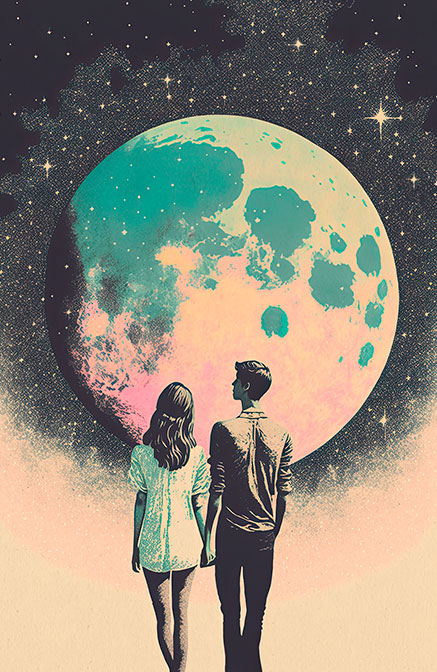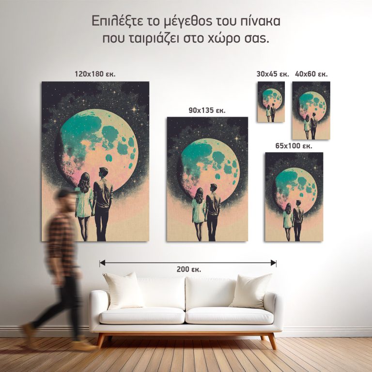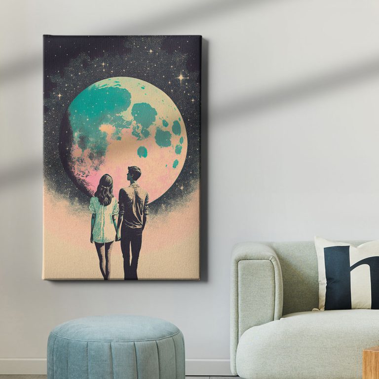 Oι πίνακες ζωγραφικής που απεικονίζουν ένα ζευγάρι να κοιτάει το φεγγάρι, θα ανανεώσουν τον χώρο σας με ένα παιχνιδιάρικο και γλυκό τρόπο.