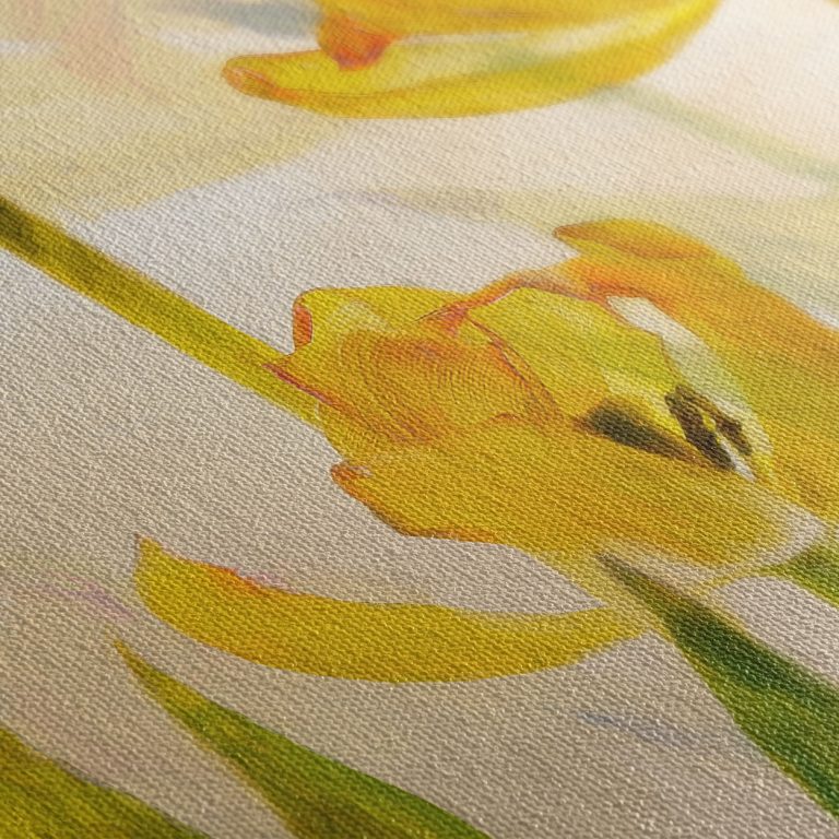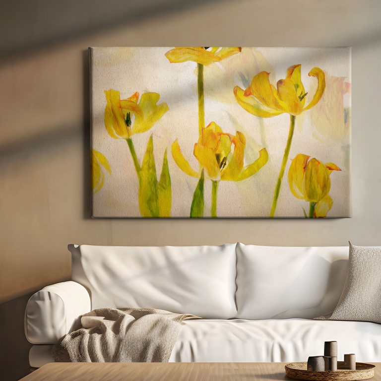 Μια αφηρημένη καλλιτεχνική απεικόνιση ανθισμένων τουλιπών, με ζωντανά χρώματα και ελεύθερες πινελιές που αποτυπώνουν τη δυναμική της άνοιξης και την ποίηση της φύσης. Οι μορφές δεν περιορίζονται σε ρεαλισμό, αλλά ξεδιπλώνονται μέσα από φαντασία και ρυθμό, δημιουργώντας ένα ονειρικό τοπίο γεμάτο κίνηση και συναίσθημα. Αυτός ο καμβάς είναι ένα έντονο σημείο εστίασης για κάθε χώρο, φέρνοντας φως, ζωή και χρώμα σε σύγχρονα ή καλλιτεχνικά περιβάλλοντα.