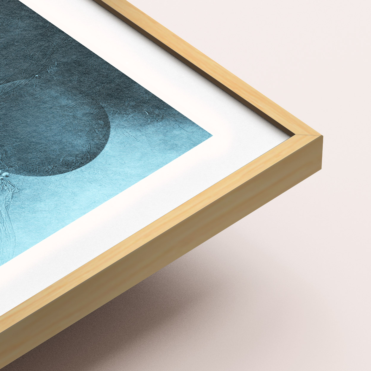 Η εκτύπωση γίνεται με eco μελάνια σε χαρτί υψηλής ποιότητας 200gr. με ματ φινίρισμα και η κορνίζα είναι από ξύλο πεύκου και πάχους 17mm x 17mm.