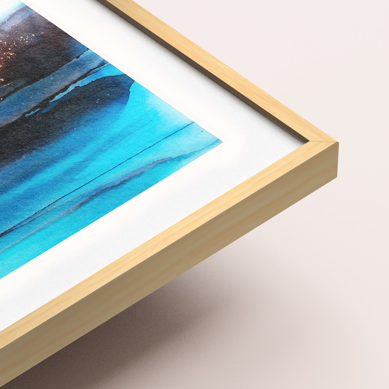 Η εκτύπωση γίνεται με eco μελάνια σε χαρτί υψηλής ποιότητας 200gr. με ματ φινίρισμα και η κορνίζα είναι από ξύλο πεύκου και πάχους 17mm x 17mm.