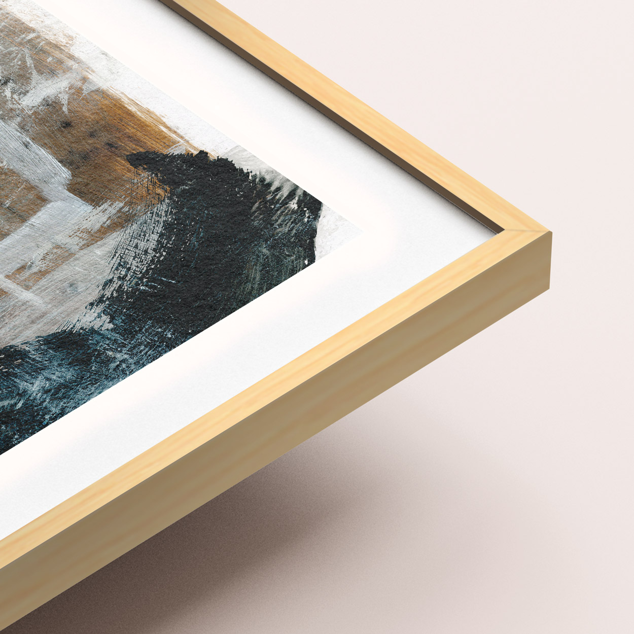 Η εκτύπωση γίνεται με eco μελάνια σε χαρτί υψηλής ποιότητας 200gr. με ματ φινίρισμα και η κορνίζα είναι από ξύλο πεύκου και πάχους 17mm x 17mm.