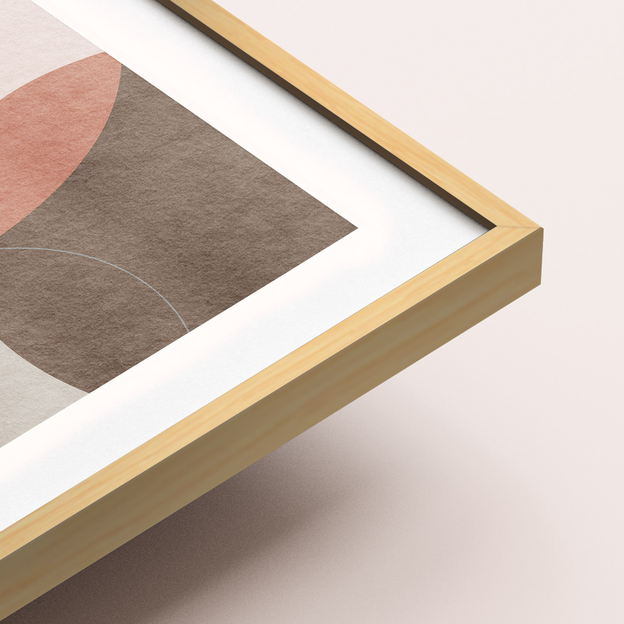 Η εκτύπωση γίνεται με eco μελάνια σε χαρτί υψηλής ποιότητας 200gr. με ματ φινίρισμα και η κορνίζα είναι από ξύλο πεύκου και πάχους 17mm x 17mm.