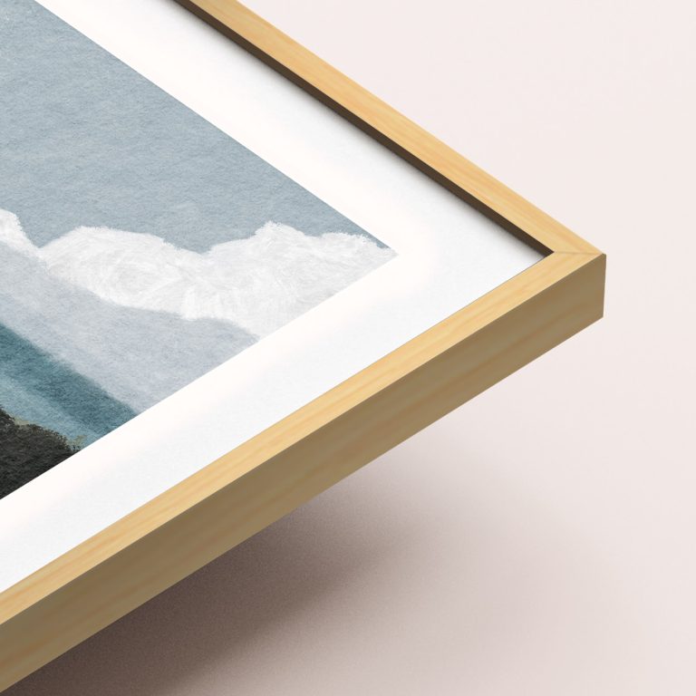 Η εκτύπωση γίνεται με eco μελάνια σε χαρτί υψηλής ποιότητας 200gr. με ματ φινίρισμα και η κορνίζα είναι από ξύλο πεύκου και πάχους 17mm x 17mm.