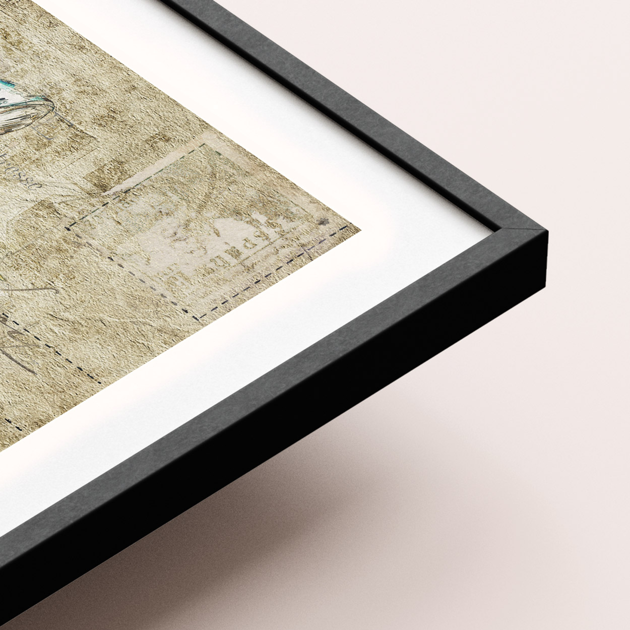 Η εκτύπωση γίνεται με eco μελάνια σε χαρτί υψηλής ποιότητας 200gr. με ματ φινίρισμα και η κορνίζα είναι από ξύλο πεύκου και πάχους 17mm x 17mm.