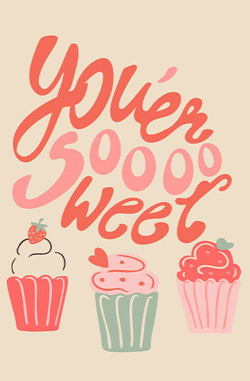Μια αφίσα τόσο γλυκιά όσο και το πρόσωπο για το οποίο προορίζεται! Το poster "You're So Sweet" συνδυάζει την καλλιγραφική τυπογραφία με τρία πανέμορφα εικονογραφημένα cupcakes σε παστέλ αποχρώσεις. Είναι η ιδανική επιλογή για να προσθέσετε μια δόση ζεστασιάς και χαράς στην κουζίνα, στο σαλόνι ή σε έναν επαγγελματικό χώρο εστίασης.