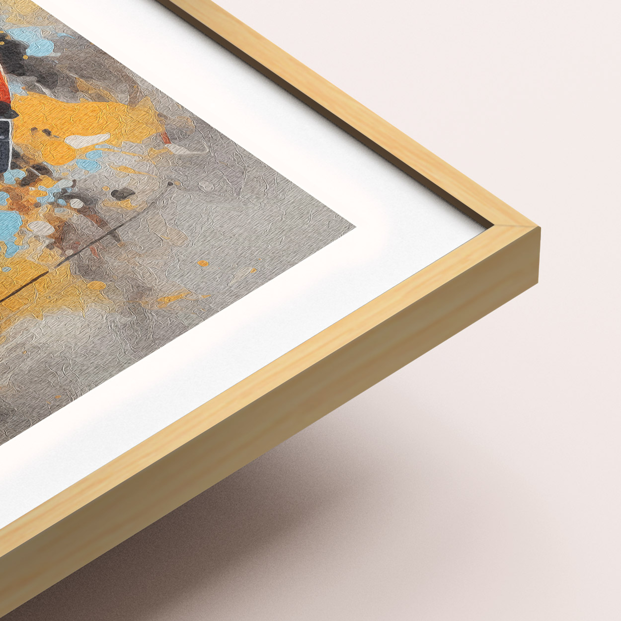 Η Αφίσα εκτυπώνεται με eco μελάνια, σε χαρτί κορυφαίας ποιότητας 200gr. και έχει ένα καταπληκτικό ματ φινίρισμα που ταιριάζει με όλα τα σχέδια της συλλογής μας. Το λευκό περιθώριο (Passpartout) αποτελεί την χάρτινη γέφυρα μεταξύ του έργου και του πλαισίου εστιάζοντας στο θέμα και ομαλοποιεί τη μετάβαση από το κέντρο προς τον ευρύτερο χώρο ενισχύοντας τις διακοσμητικές ιδιότητες του. Η κάθε διάσταση εκτύπωσης έχει και την δική της διάσταση περιθωρίου (Passpartout). Παρακαλώ ανατρέξτε στον πίνακα που αναγράφονται αναλυτικά οι διαστάσεις, ώστε να επιλέξετε αυτό που σας ταιριάζει καλύτερα. Η κορνίζα που χρησιμοποιούμε είναι από ξύλο πεύκου και πάχους 17mm x 17mm, και μπορείτε να επιλέξετε χρώμα ανάμεσα σε λευκό, μαύρο και χρώμα του ξύλου ανοιχτό. To plexiglass στην μπροστά όψη είναι ανθεκτικό και διάφανο στα 2mm, η πλάτη είναι από mdf και στο πίσω μέρος υπάρχει και το μεταλλικό κλιπ κρέμασης.