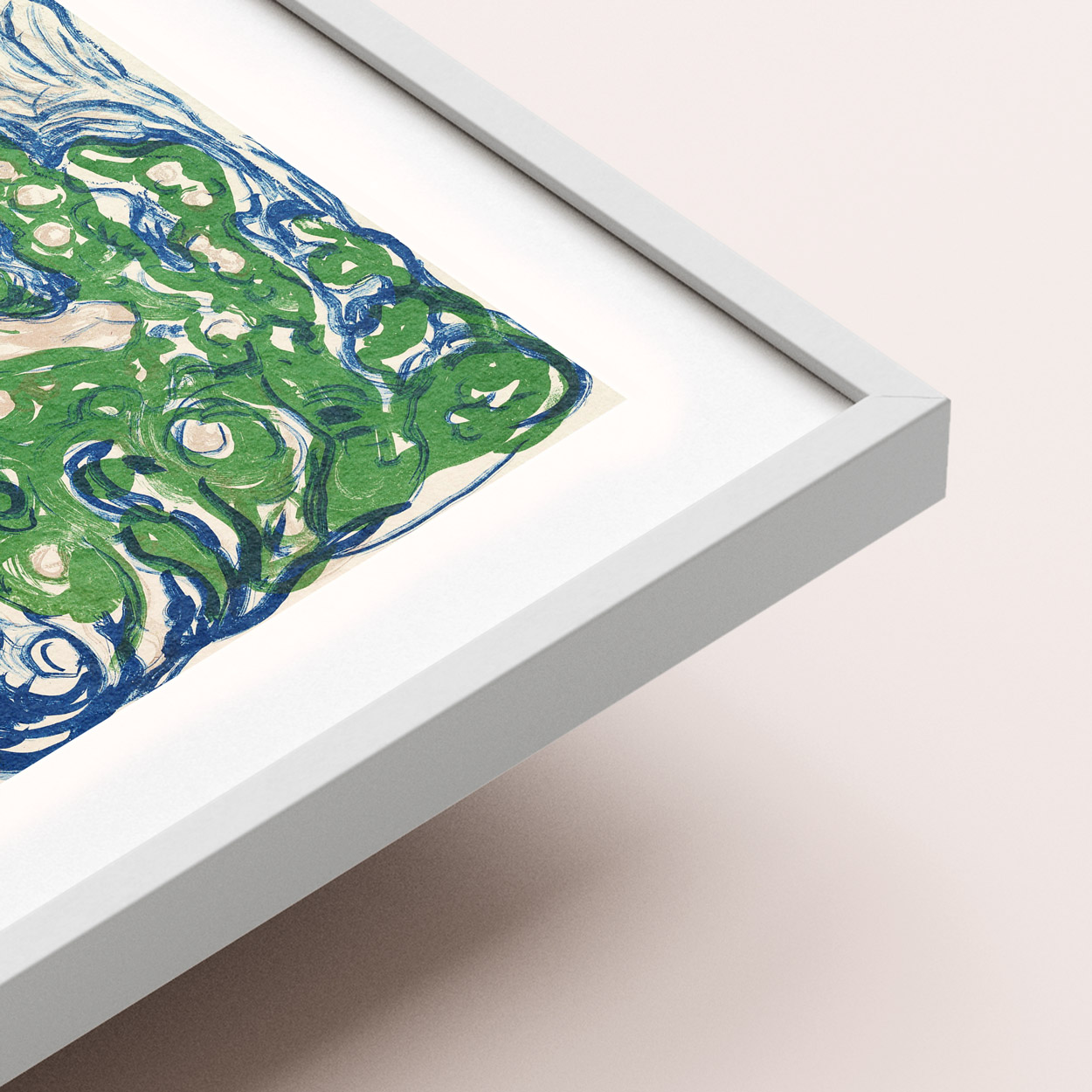 Η εκτύπωση γίνεται με eco μελάνια σε χαρτί υψηλής ποιότητας 200gr. με ματ φινίρισμα και η κορνίζα είναι από ξύλο πεύκου και πάχους 17mm x 17mm.
