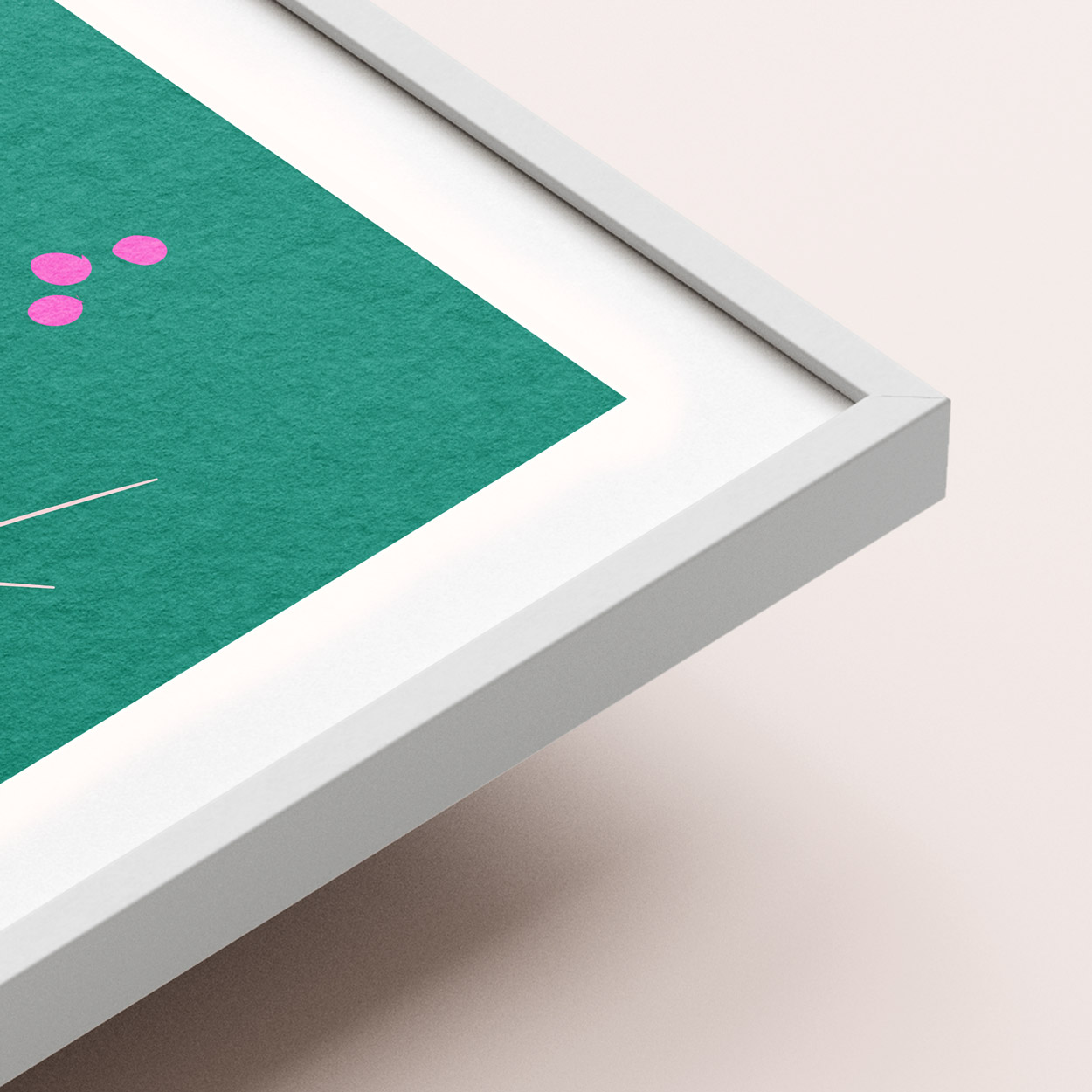Η εκτύπωση γίνεται με eco μελάνια σε χαρτί υψηλής ποιότητας 200gr. με ματ φινίρισμα και η κορνίζα είναι από ξύλο πεύκου και πάχους 17mm x 17mm.