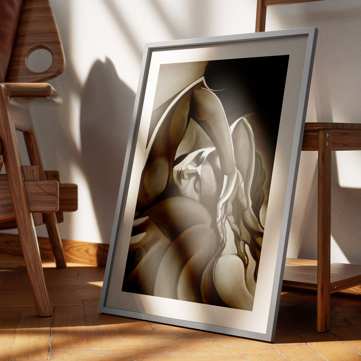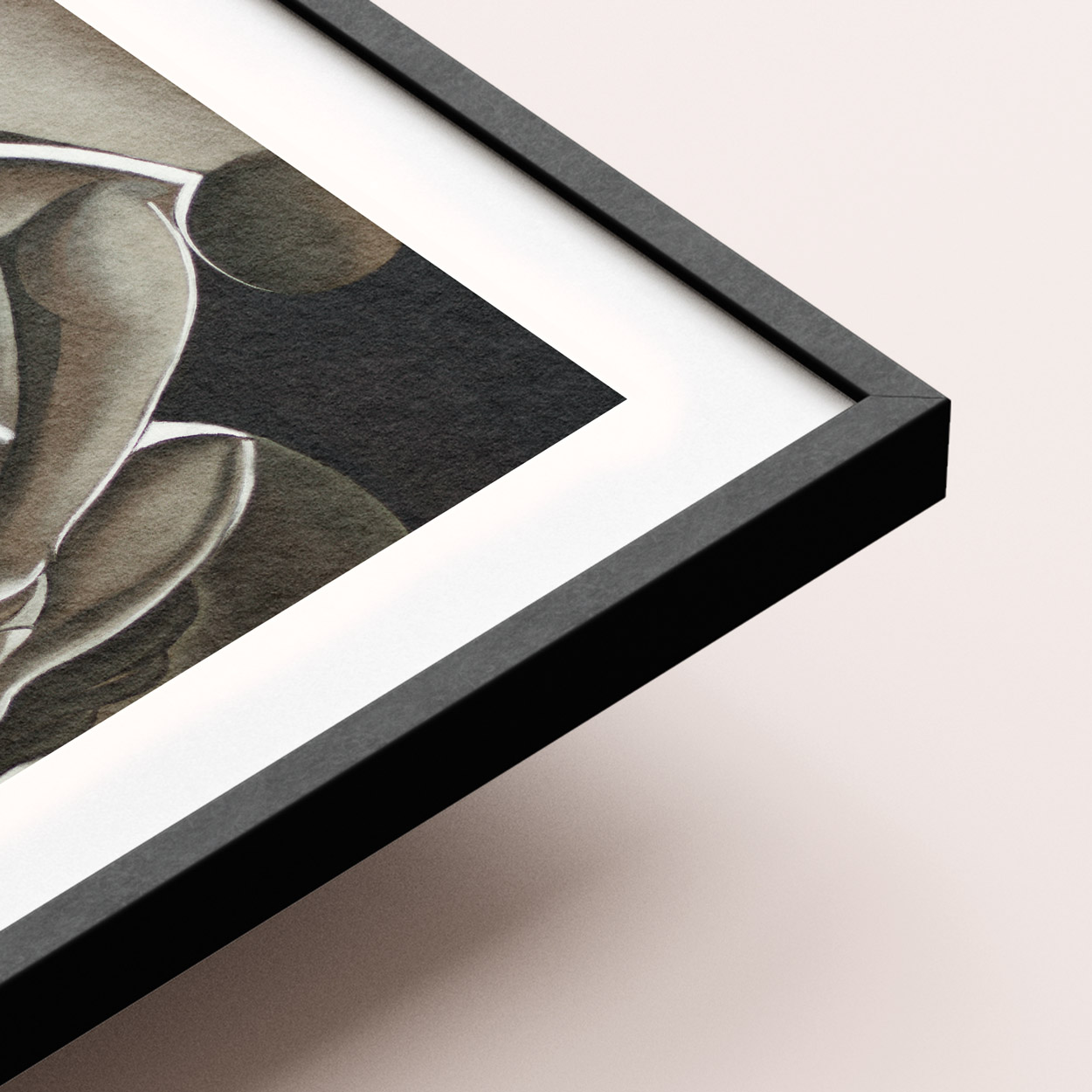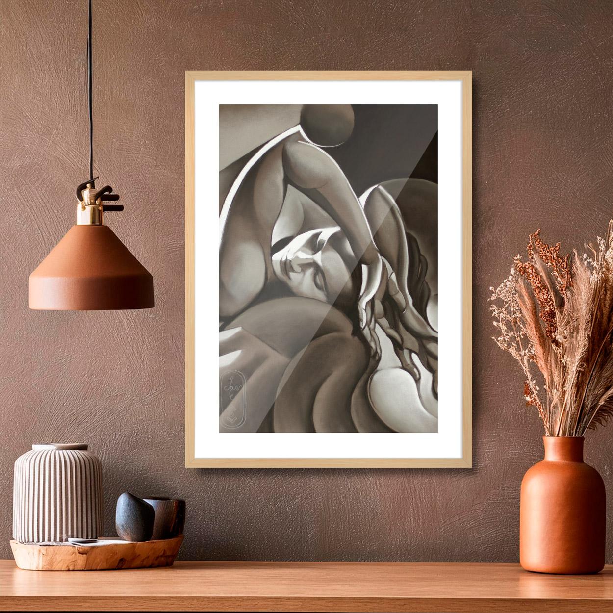 Η εκτύπωση γίνεται με eco μελάνια σε χαρτί υψηλής ποιότητας 200gr. με ματ φινίρισμα και η κορνίζα είναι από ξύλο πεύκου και πάχους 17mm x 17mm.