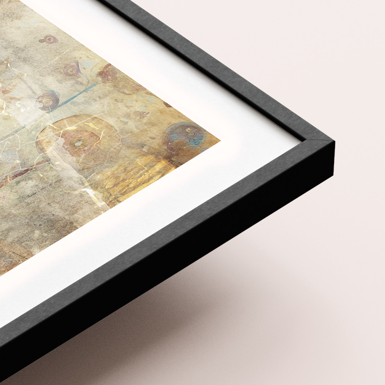 Η Αφίσα εκτυπώνεται με eco μελάνια, σε χαρτί κορυφαίας ποιότητας 200gr. και έχει ένα καταπληκτικό ματ φινίρισμα που ταιριάζει με όλα τα σχέδια της συλλογής μας. Το λευκό περιθώριο (Passpartout) αποτελεί την χάρτινη γέφυρα μεταξύ του έργου και του πλαισίου εστιάζοντας στο θέμα και ομαλοποιεί τη μετάβαση από το κέντρο προς τον ευρύτερο χώρο ενισχύοντας τις διακοσμητικές ιδιότητες του. Η κάθε διάσταση εκτύπωσης έχει και την δική της διάσταση περιθωρίου (Passpartout). Παρακαλώ ανατρέξτε στον πίνακα που αναγράφονται αναλυτικά οι διαστάσεις, ώστε να επιλέξετε αυτό που σας ταιριάζει καλύτερα. Η κορνίζα που χρησιμοποιούμε είναι από ξύλο πεύκου και πάχους 17mm x 17mm, και μπορείτε να επιλέξετε χρώμα ανάμεσα σε λευκό, μαύρο και χρώμα του ξύλου ανοιχτό. To plexiglass στην μπροστά όψη είναι ανθεκτικό και διάφανο στα 2mm, η πλάτη είναι από mdf και στο πίσω μέρος υπάρχει και το μεταλλικό κλιπ κρέμασης.