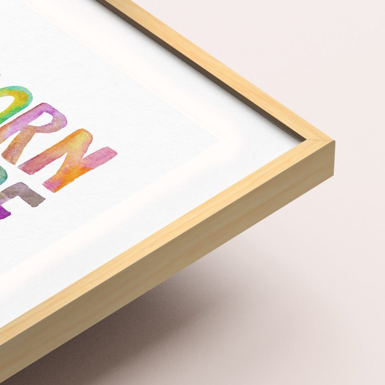 Η εκτύπωση γίνεται με eco μελάνια σε χαρτί υψηλής ποιότητας 200gr. με ματ φινίρισμα και η κορνίζα είναι από ξύλο πεύκου και πάχους 17mm x 17mm.