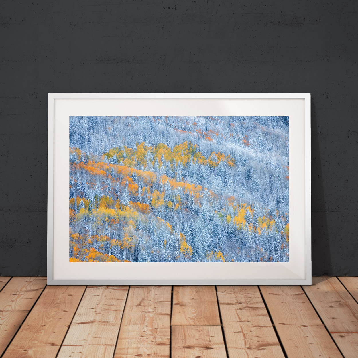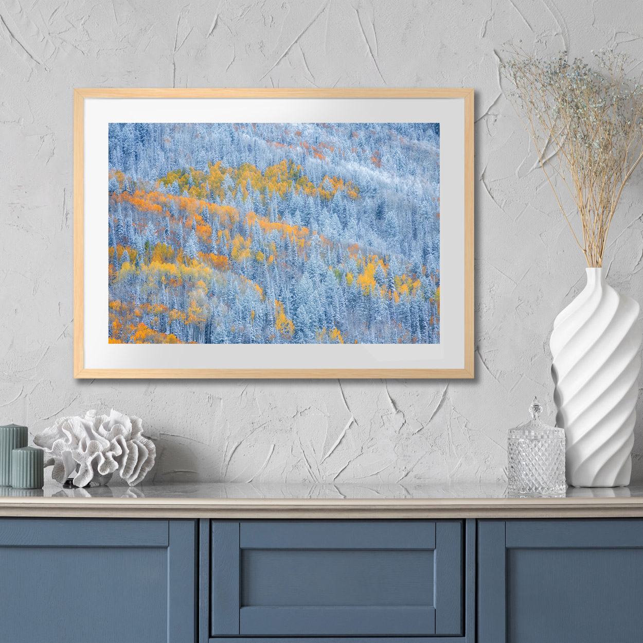 Η εκτύπωση γίνεται με eco μελάνια σε χαρτί υψηλής ποιότητας 200gr. με ματ φινίρισμα και η κορνίζα είναι από ξύλο πεύκου και πάχους 17mm x 17mm.