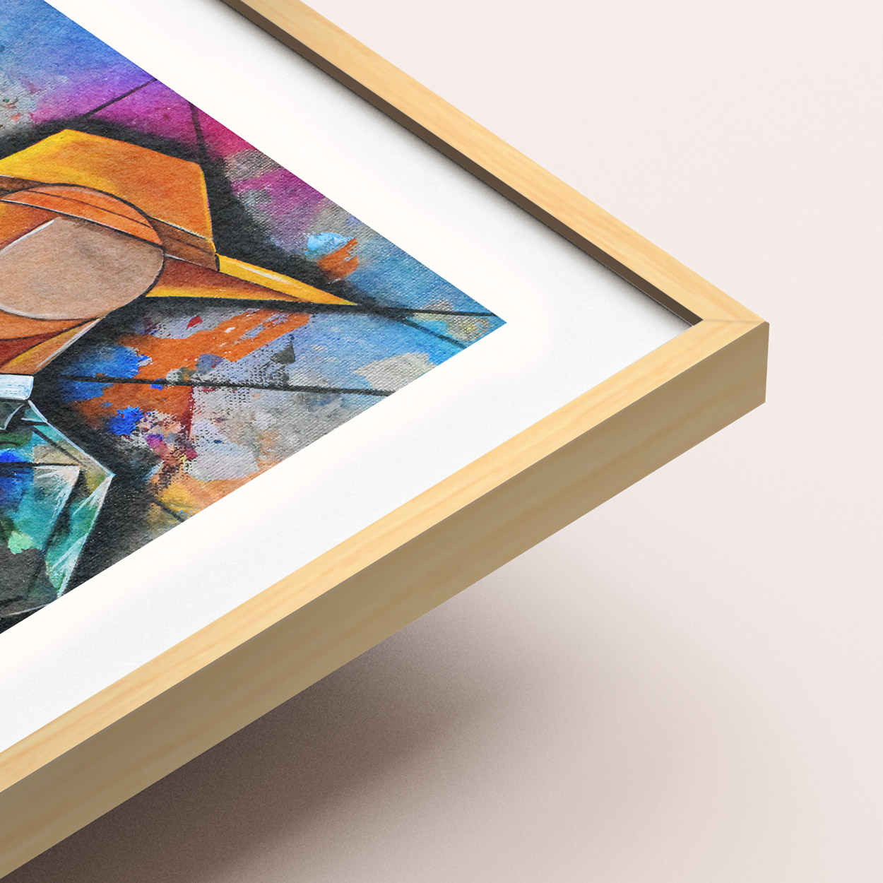 Η εκτύπωση γίνεται με eco μελάνια σε χαρτί υψηλής ποιότητας 200gr. με ματ φινίρισμα και η κορνίζα είναι από ξύλο πεύκου και πάχους 17mm x 17mm.