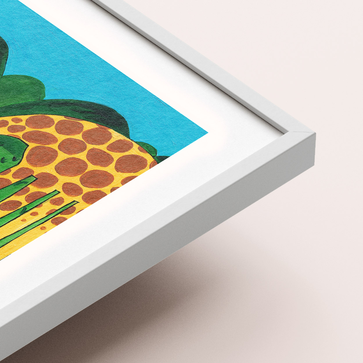 Η εκτύπωση γίνεται με eco μελάνια σε χαρτί υψηλής ποιότητας 200gr. με ματ φινίρισμα και η κορνίζα είναι από ξύλο πεύκου και πάχους 17mm x 17mm.